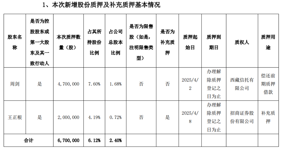 大额套现的背后是实控人紧张的资金状况。早在4 月9日,迈为股份发布的公告显示,实控人之一的周剑在解除 557 万股股份质押后,又新增质押 470 万股用于偿还前期借款;王正根则新增质押 200 万股补充质押。